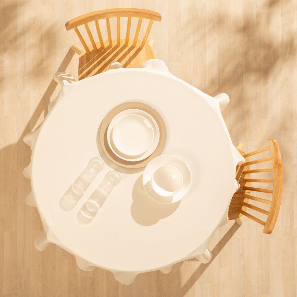 Mantel de poliéster con textura en la tela. Producto disponible en 2 medidas. Cuenta con certificación Oeko-Tex.