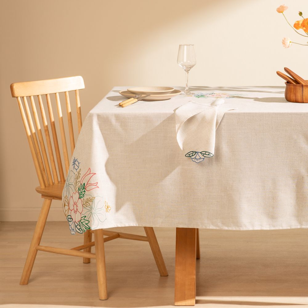 Mantel con detalle bordado de poliéster y lino. Pertenece a la Colección Altezzo.