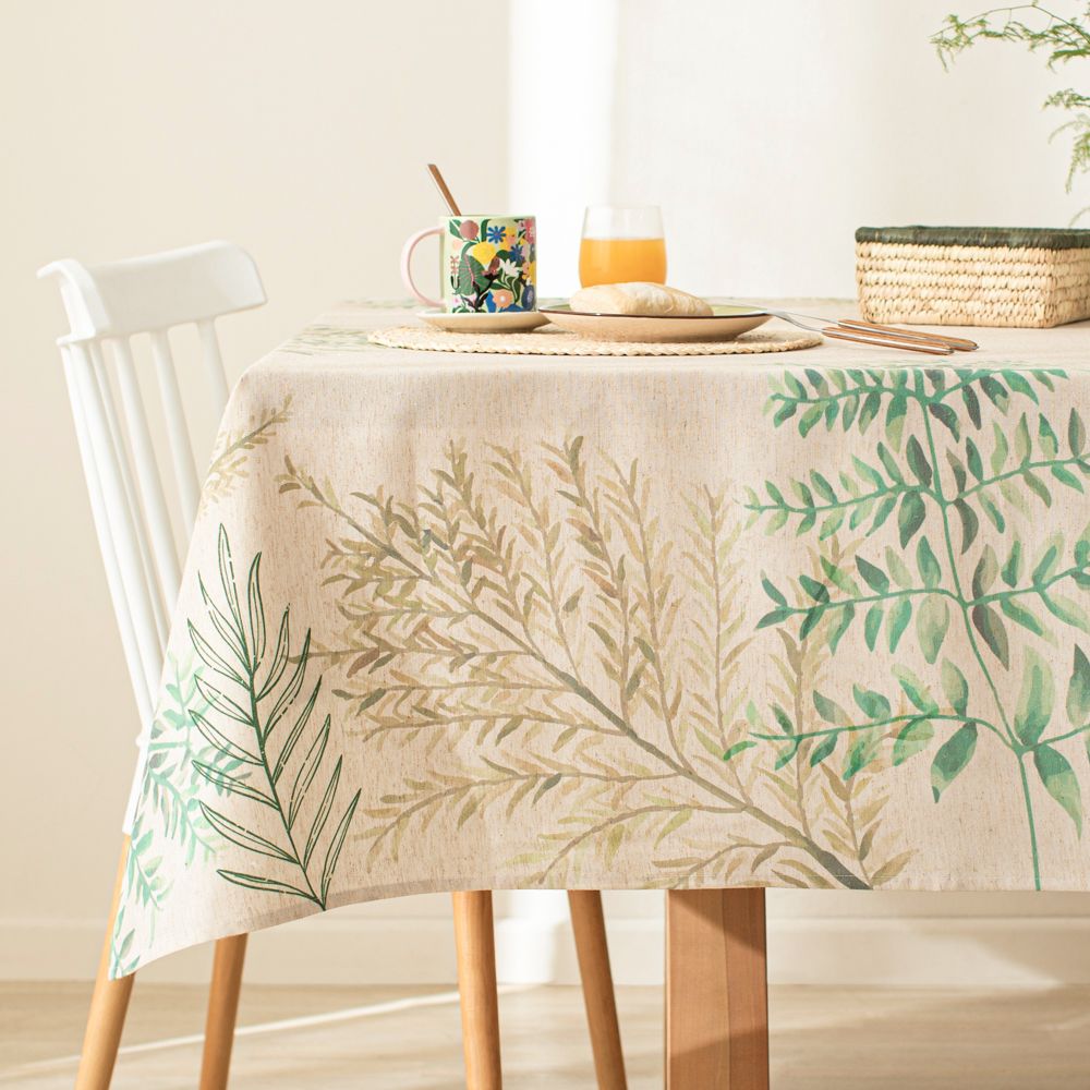 Mantel de poliéster y lino con look linoso y estampado floral