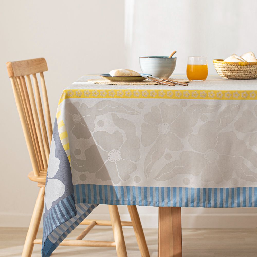 Mantel de poliéster jacquard con diseño en distintos paneles.