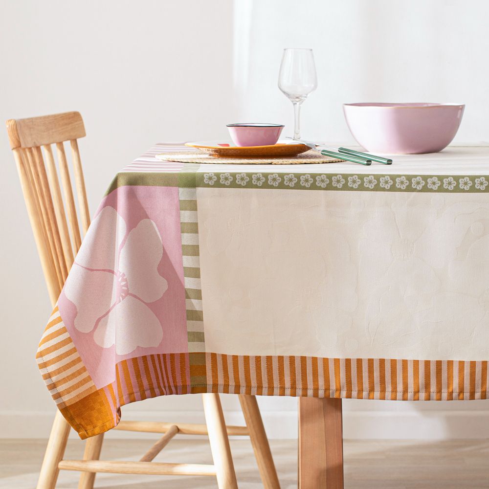 Mantel de poliéster jacquard con diseño en distintos paneles.