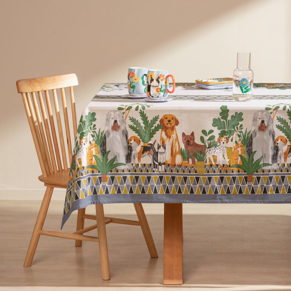 Mantel de 75% algodón-25% poliéster con lindo diseño estampado.