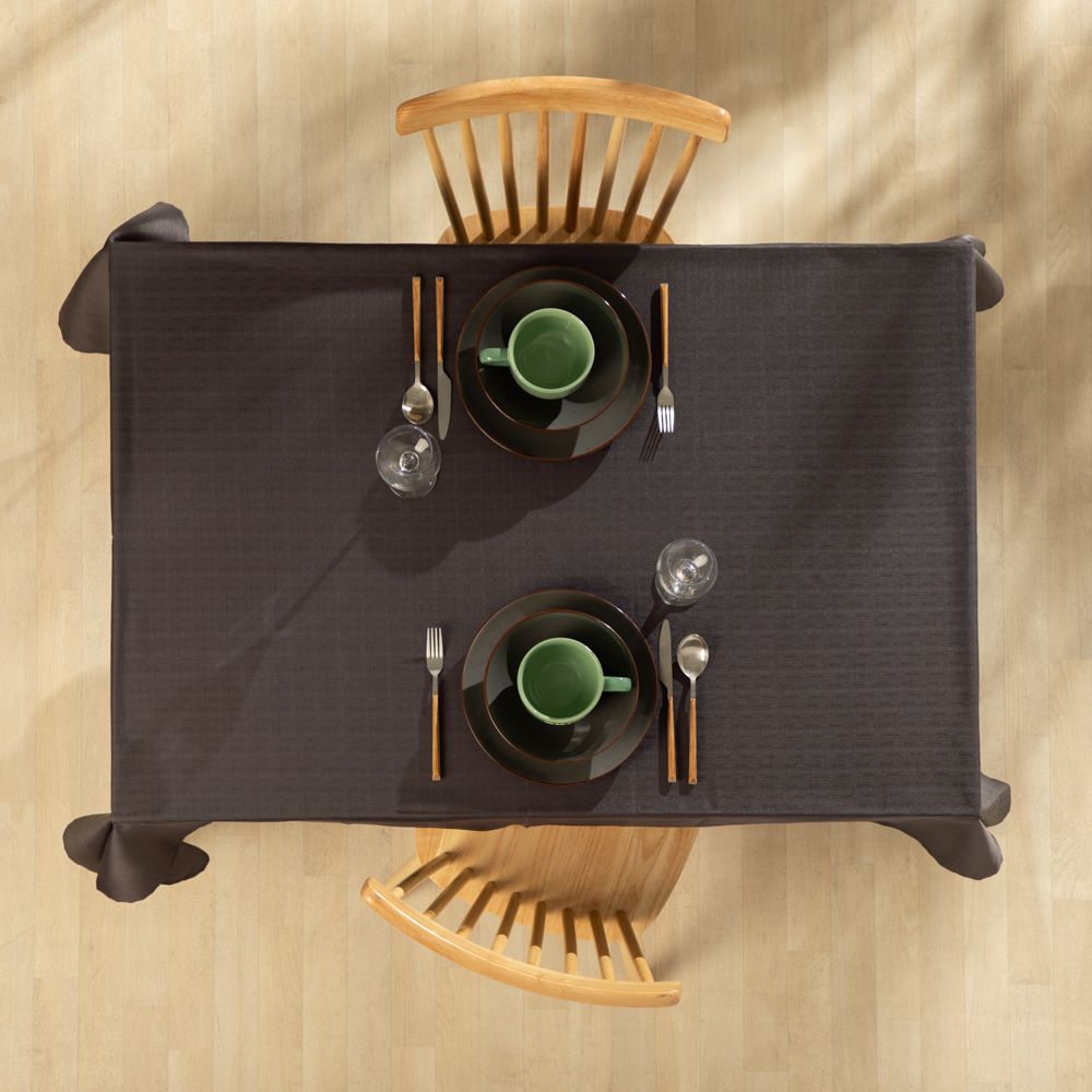 Mantel de poliéster con textura en la tela. Producto disponible en 2 medidas. Cuenta con certificación Oeko-Tex.