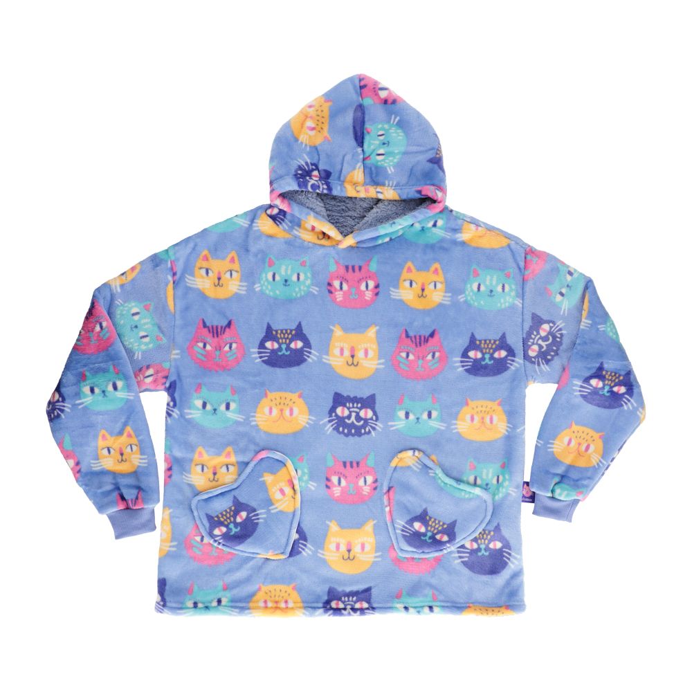 Maxi sudadera de tela corderito poliéster con gorro. Muy suave y peludito para ocupar en la casa. Ideal para niños entre 6 a 8 años.