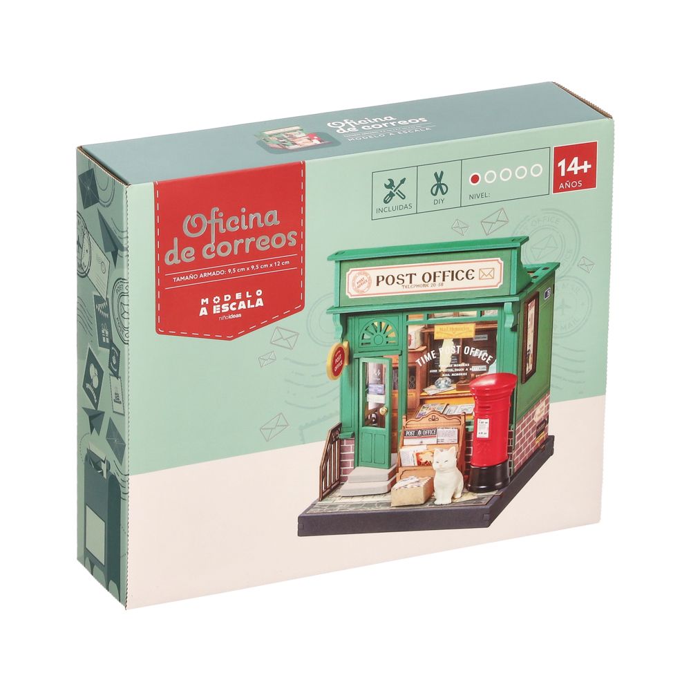 Modelo a escala armable para que construyas tu propia “Oficina de correos” con un nivel de dificultad 1. Contiene 57 piezas e instructivo de armado.
