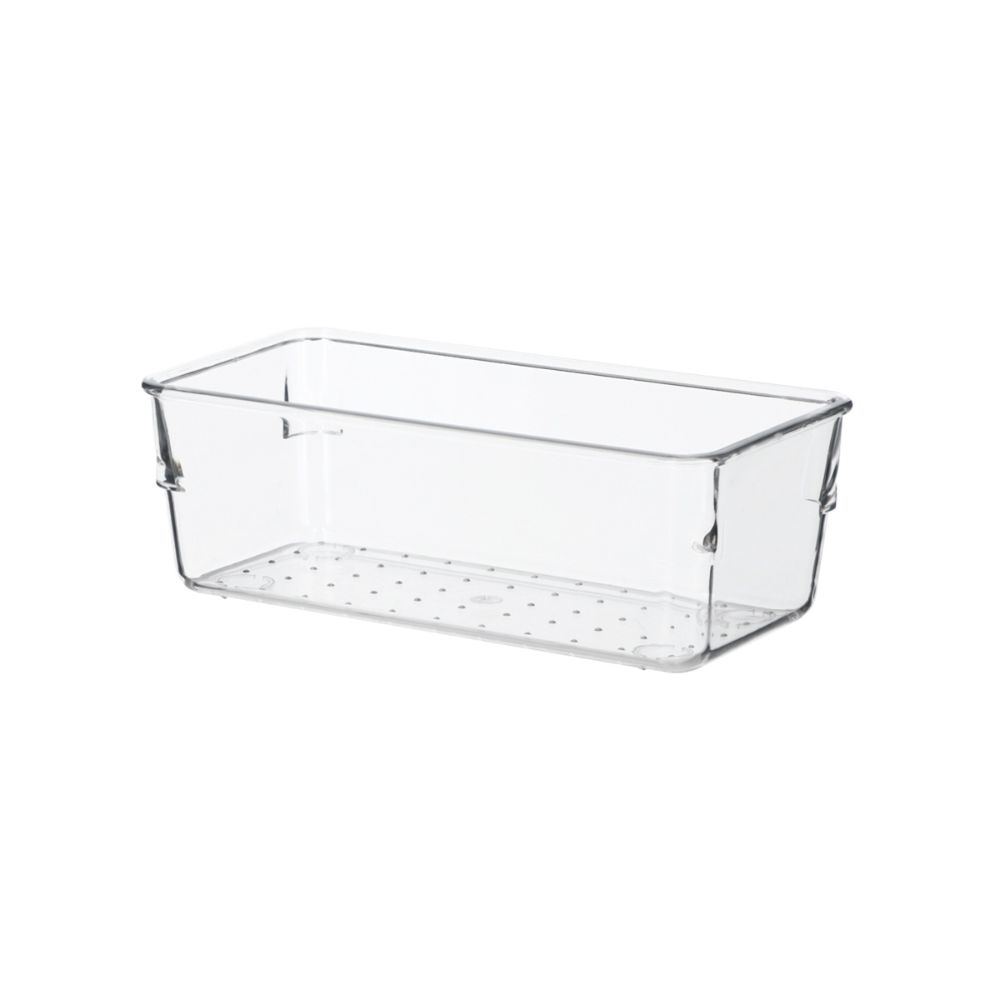 Organizador de cajón de plástico pet transparente. combínalo con nuestra colección de organizadores para cajón modulares. Tiene un tamaño de 15.6x7.7x5.6cm.