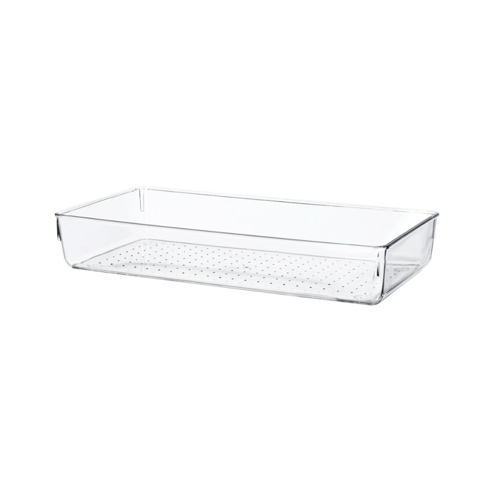 Organizador de cajón de plástico PET transparente. Combínalo con nuestra colección de organizadores para cajón modulares. Tiene un tamaño de 30.6x15.3x5.6 cm. Lavar con detergente suave.