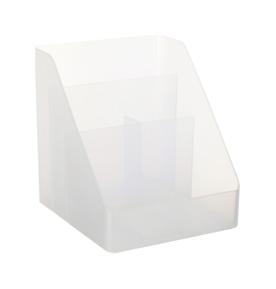 Organizador de documentos Plástico semi transparente para escritorio. Tiene un tamaño de 16x1.8x17.8 cm