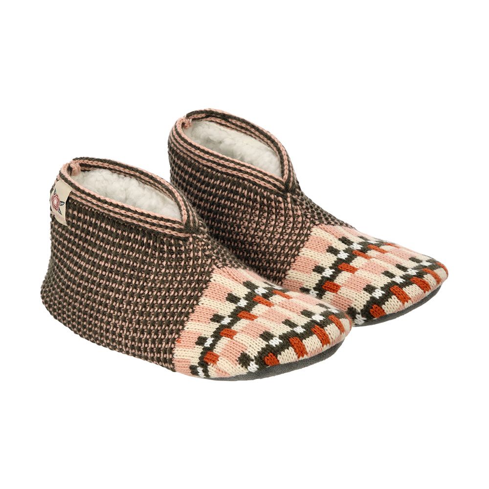 Pantufla tejida con suela blanda e interior de tela peludita. Disponible en dos tallas.