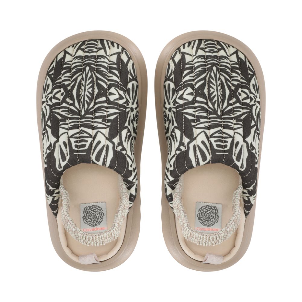 Pantuflas con diseño estampado, suave interior, amarre en el tobillo y suela de TPR. Ideales para estar en casa.