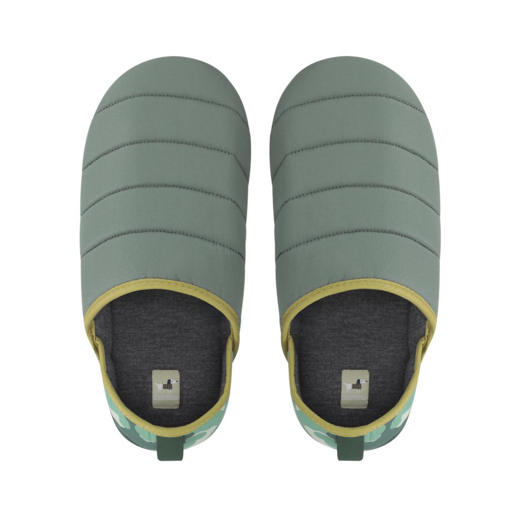 Pantuflas con cubierta de tela taffeta con estampado, suave interior y suela de EVA. Ideales para estar en casa.
