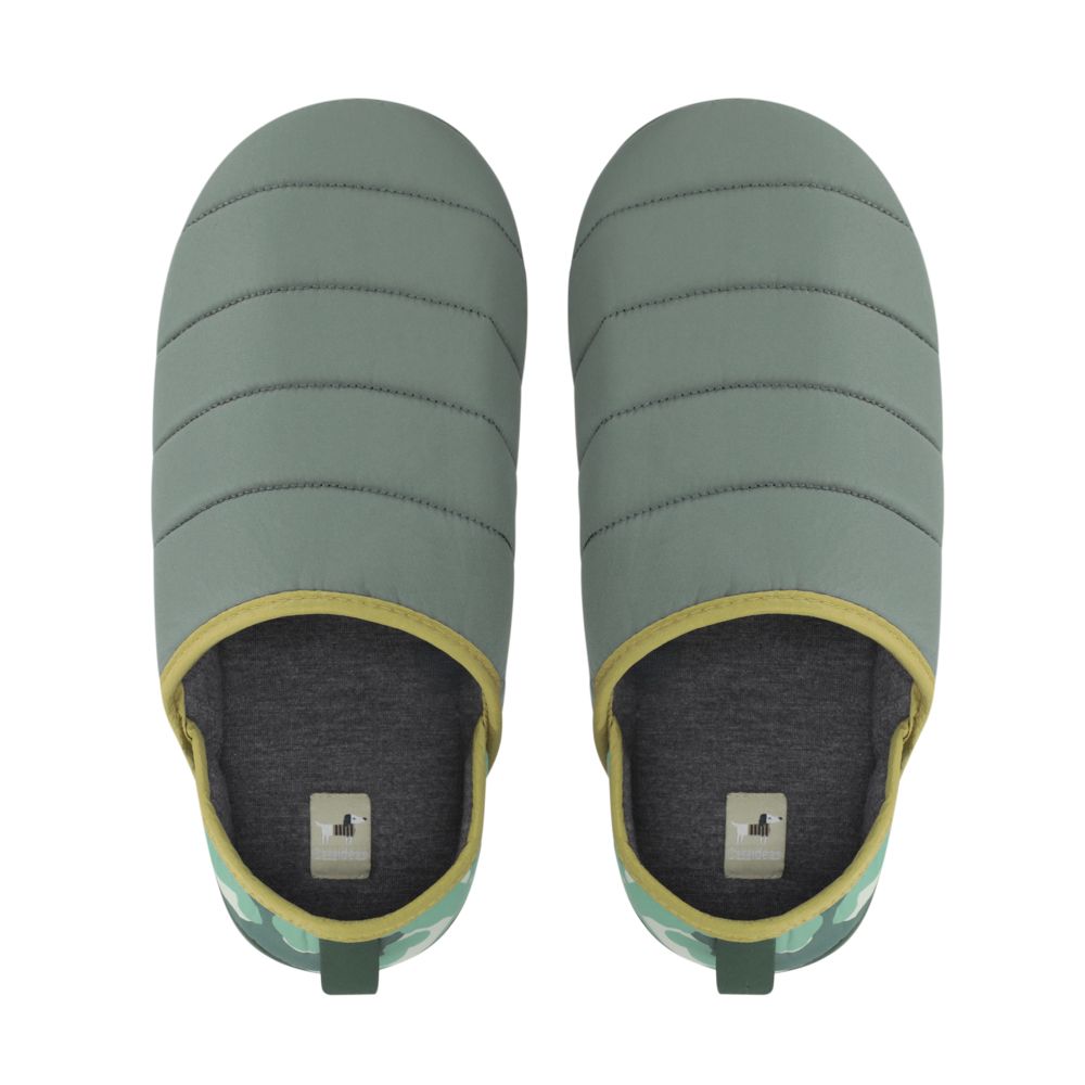 Pantuflas con cubierta de tela taffeta con estampado, suave interior y suela de EVA. Ideales para estar en casa.