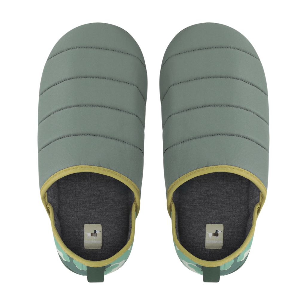 Pantuflas con cubierta de tela taffeta con estampado, suave interior y suela de EVA. Ideales para estar en casa.
