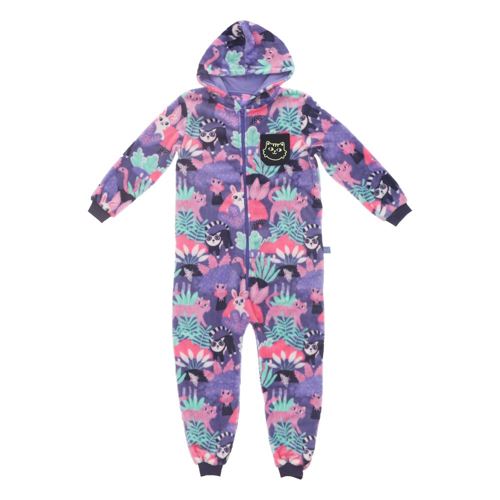 Pijama infantil enterito de tela corderito poliéster con lindo diseño estampado y gorro. Producto talla 8, ideal para pequeños de 7 a 8 años.