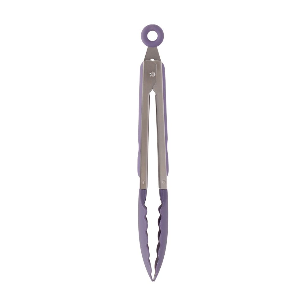 Pinza cocina de acero inoxidable con punta de goma y bandas antideslizantes. Tiene un tamaño de 3.2x3.8x27 cm.