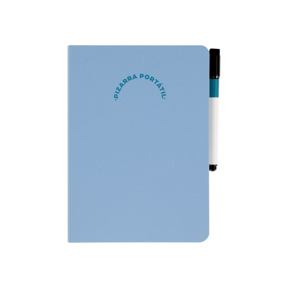 Pizarra portátil con marcador borrable. Tiene un tamaño de 16.75x21.5 cm.