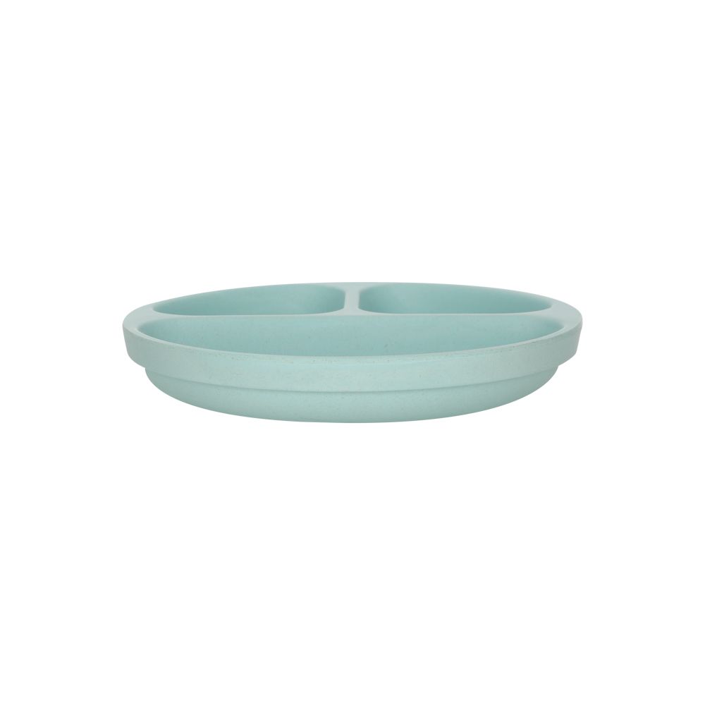 Plato de fibra de bambú con divisiones. Apto para contacto con alimentos. Tiene un diámetro de 18.5x3.2 cm. Producto libre de BPA.