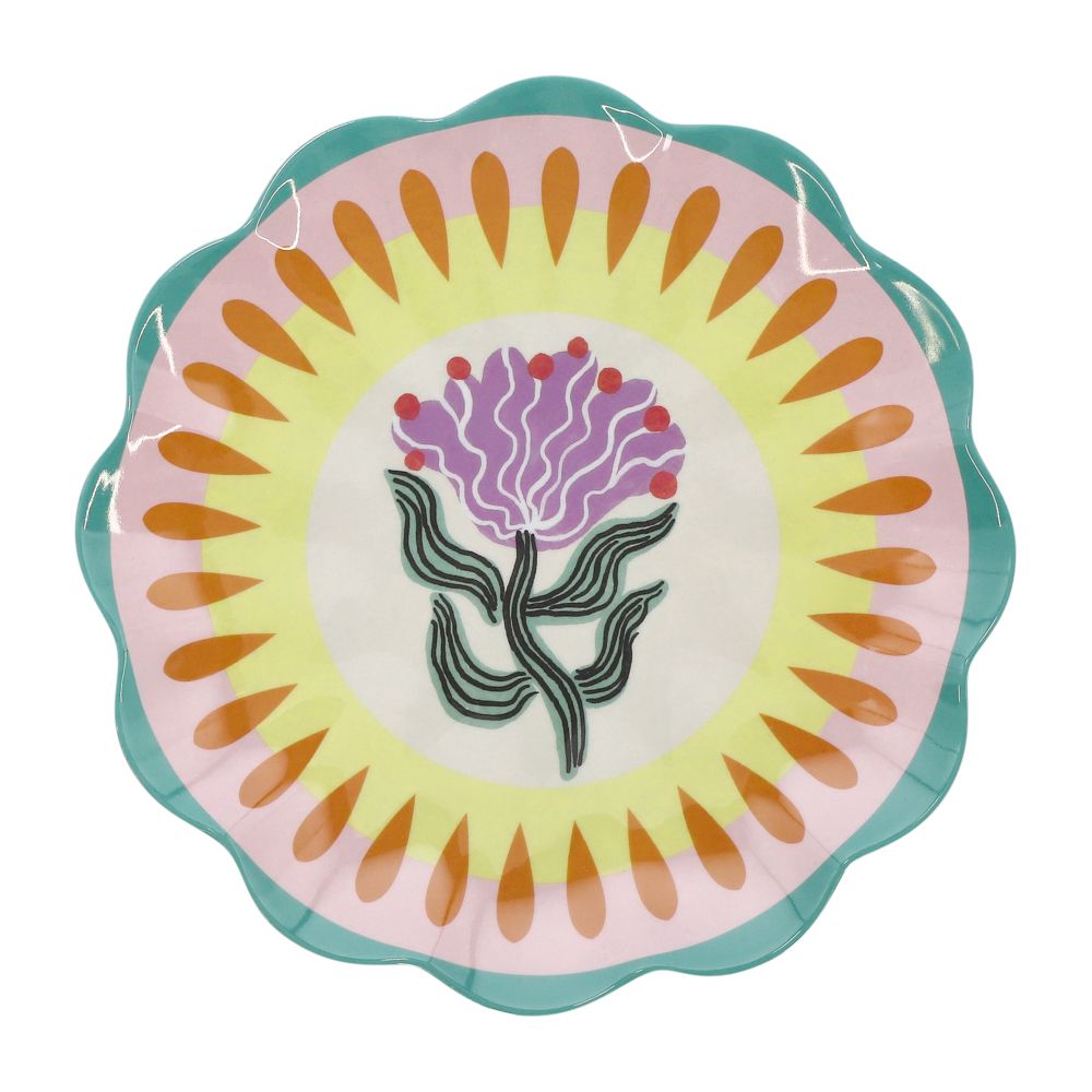 Plato de melamina con diseño estampado y borde tipo flor
