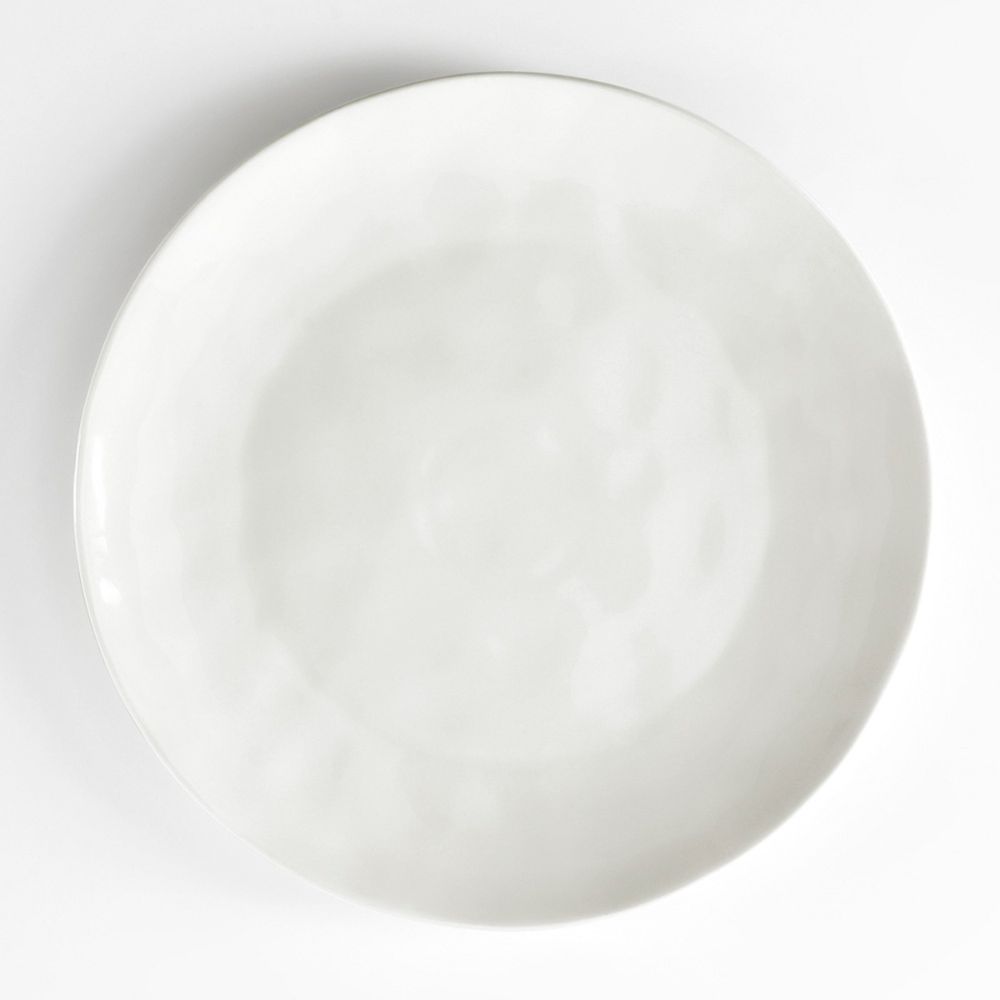 Plato extendido de porcelana y bordes irregulares. Combina lo delicado y lo rústico, resistente y durable. 26 cm. Pertenece a la Colección vajilla Porcelana Hammer. Apto para lavavajillas y microondas