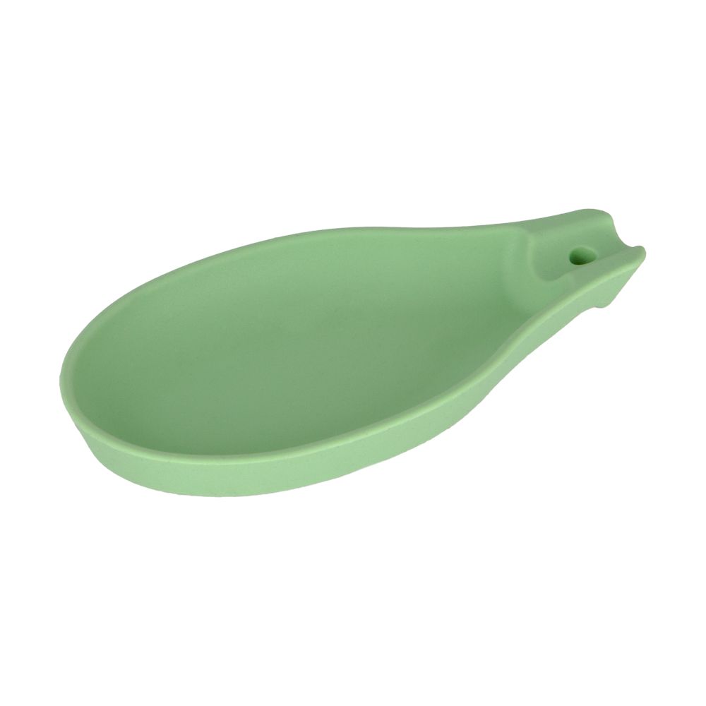 Posa cuchara de silicona para la cocina. Producto libre de BPA. Tiene un tamaño de 7.6x1.7x14.5 cm