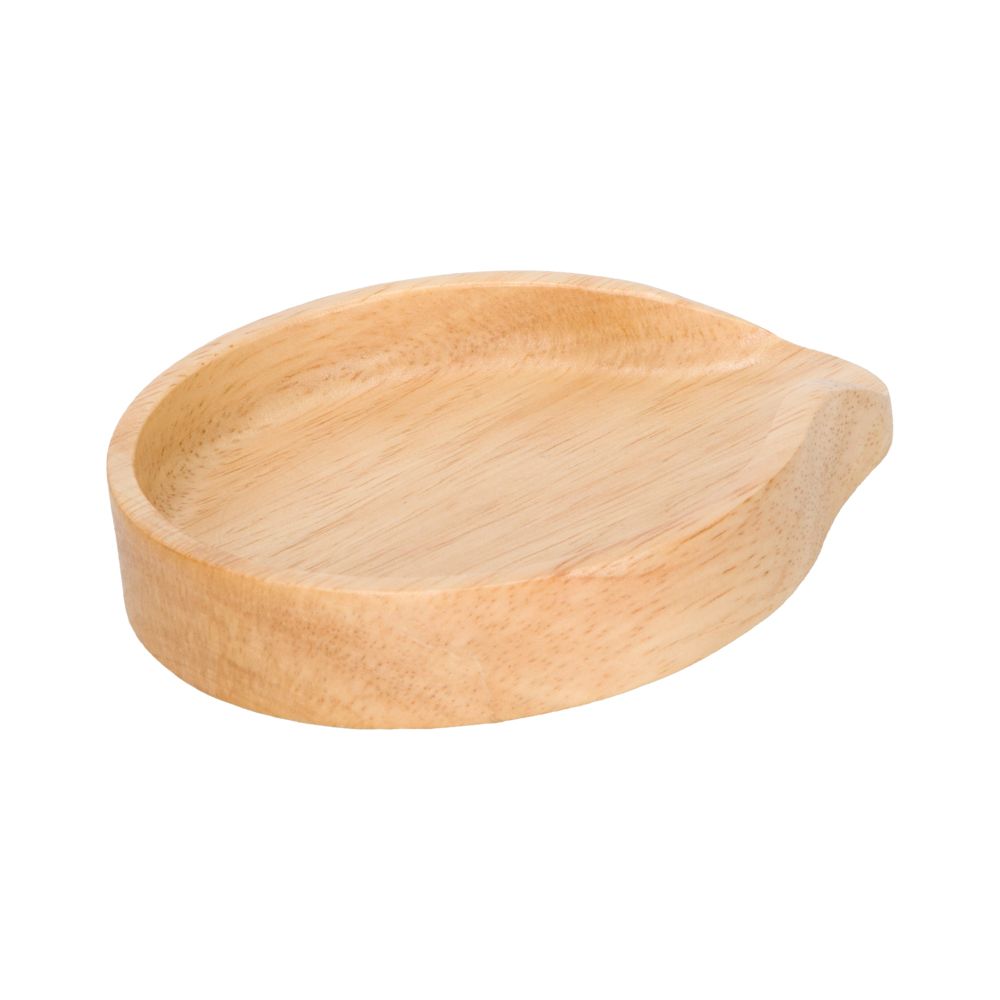 Posacuchara de madera de caucho. Tiene un tamaño de 13x13x2 cm.