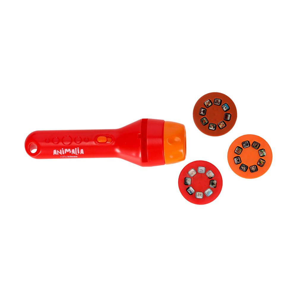 Linterna con proyector animalia. Contiene tres discos con proyecciones.