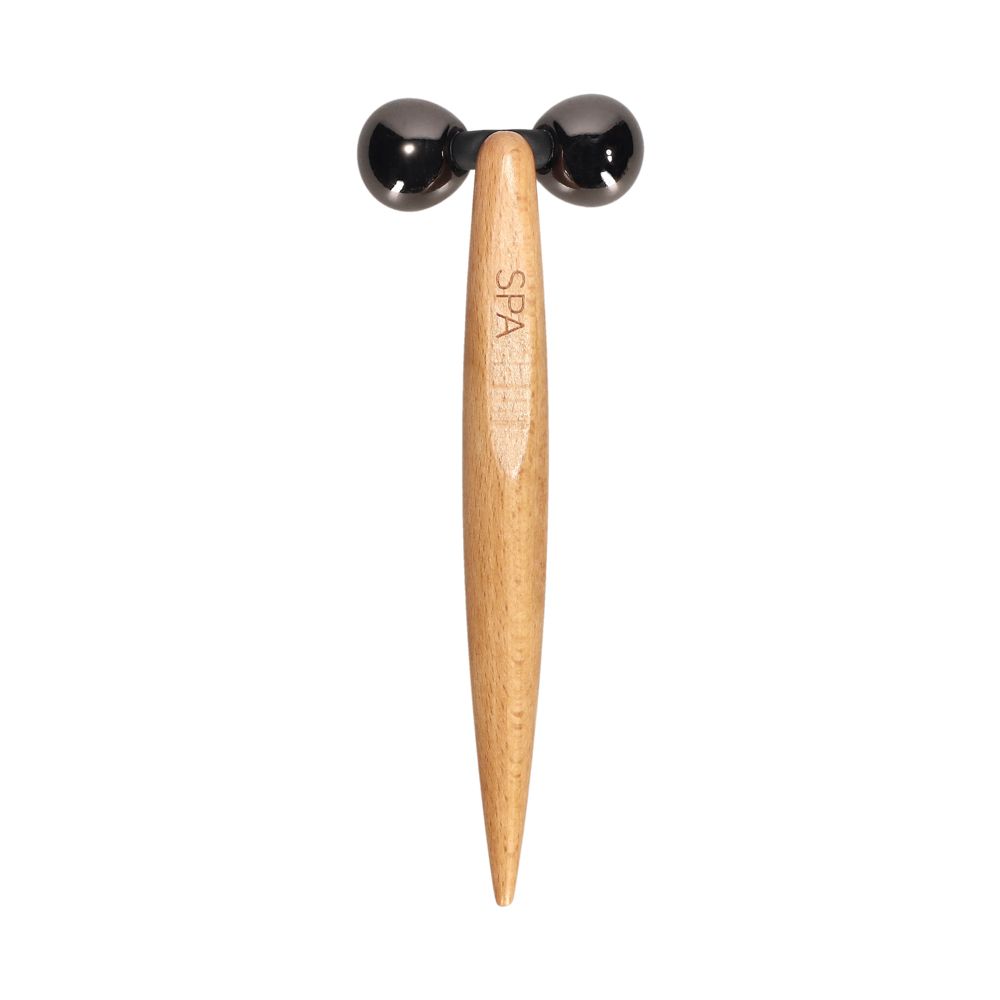 Masajeador facial tipo rodillo de zinc y madera. Este masaje es ideal para atenuar líneas de expresión, aumentar la eliminación natural de toxinas y promover la producción de colágeno y elastina