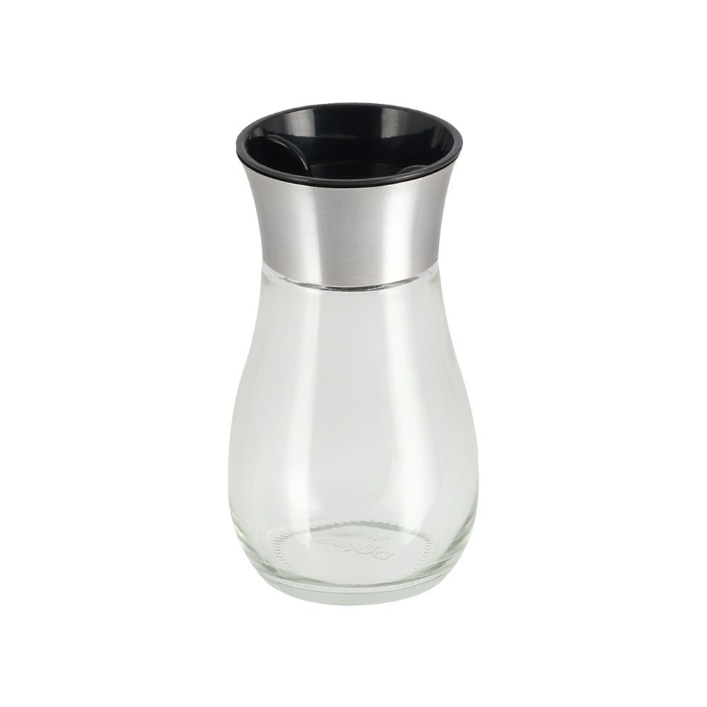 Salero de vidrio con tapa dosificadora de Plástico. Capacidad: 125 ml. Lavar a mano.