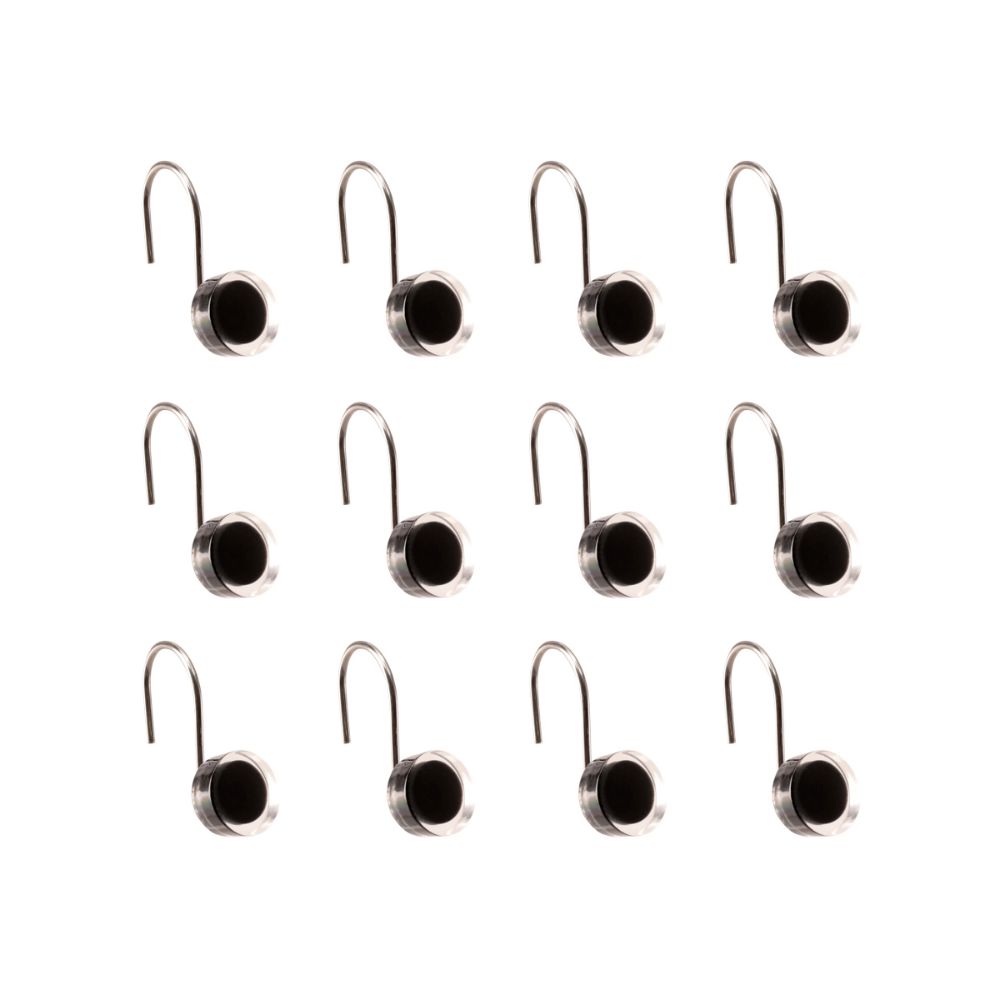 Set de 12 ganchos de poliresina para colgar la cortina de baño. Limpiar con paño húmedo.