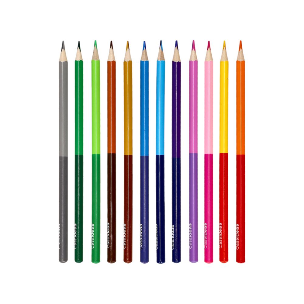 Set de lápices de madera mina de dos colores. Ideales para un efecto degradado. Incluye 12 lápices de dos colores distintos cada uno.