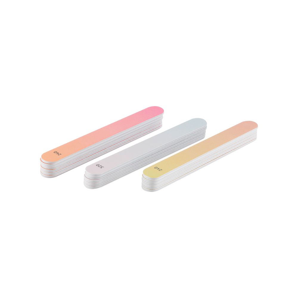 Set de 16 limas para las uñas de eva con diferentes granos por cada lado. Cada lima incluye un lado de grano 240 para dar forma y un lado de grano 320 para emparejar.