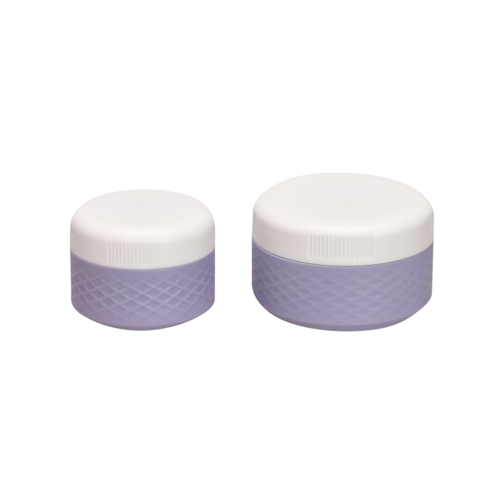 Set de 2 contenedores de silicona para guardar tus líquidos Ideal para viajar. Tienen un tamaño de 30 ml y 50 ml.