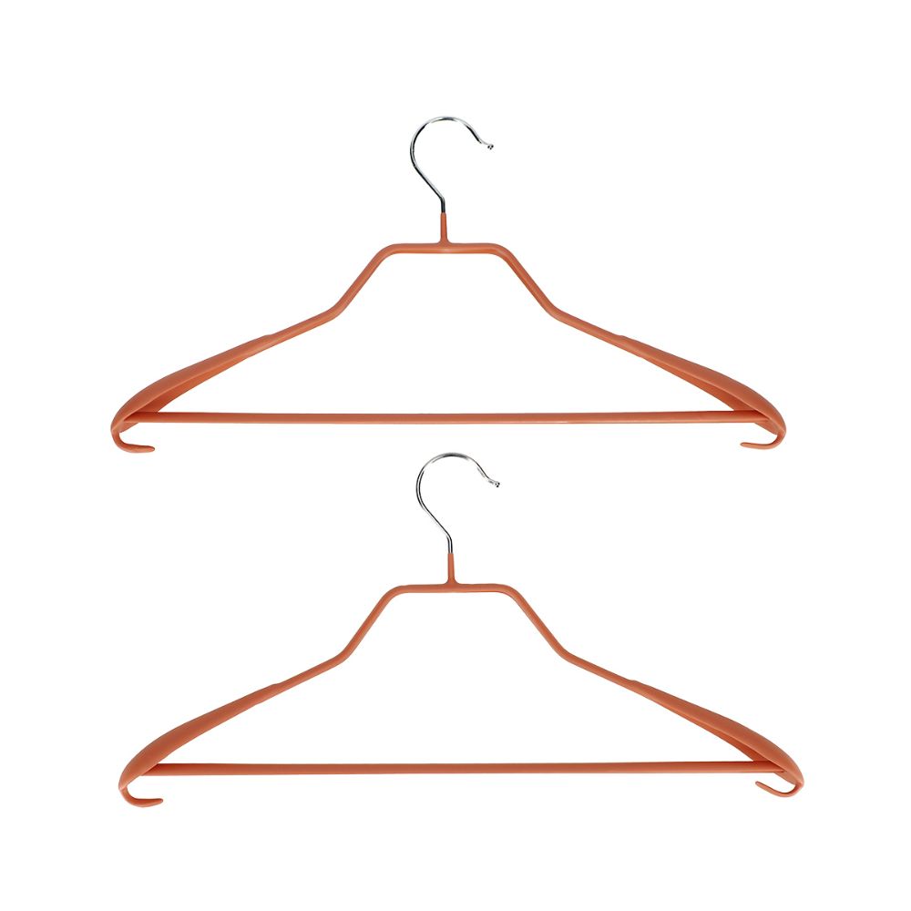 Set de 2 ganchos de ropa de metal con cubierta antideslizante. Tiene un tamaño de 42x3.35x23 cm. Limpiar con paño húmedo.