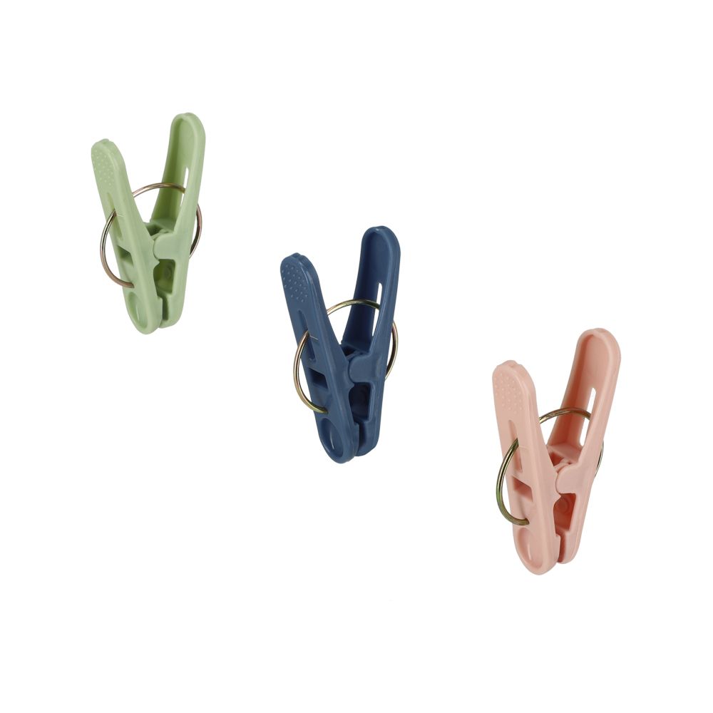 Set de 30 pinzas para la ropa de plástica de diferentes colores. Cada pinza tiene un tamaño de 1.2x3x5.5 cm.