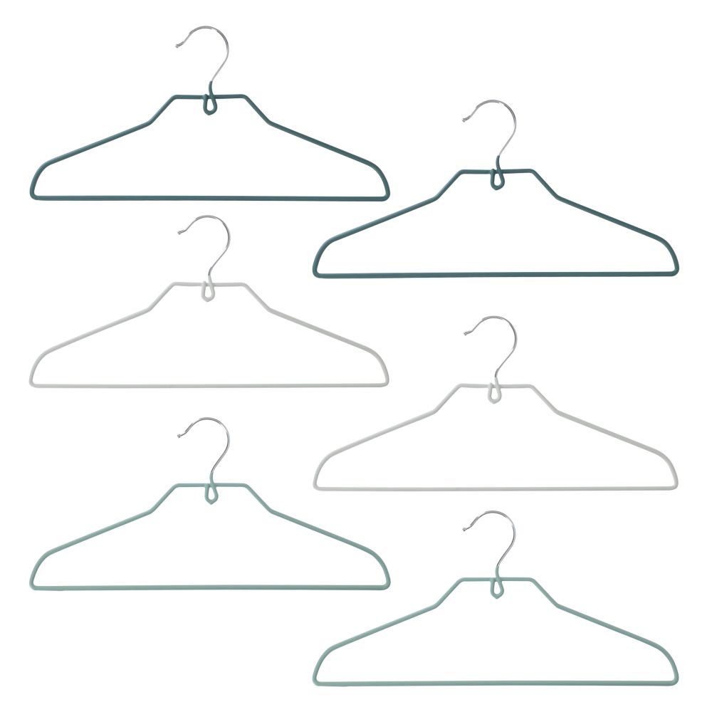 Set 6 Ganchos de metal con cubierta antideslizante y divertidos colores.Tienen un tamaño de 40x34x19 cm.