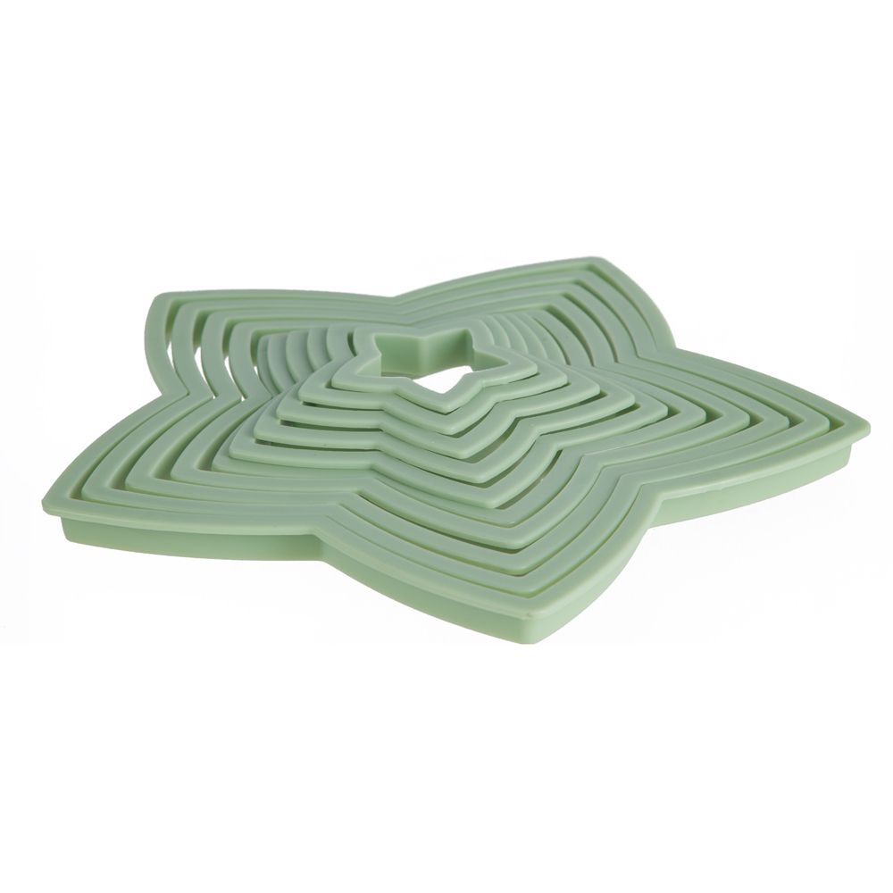 Set de cortadores de galletas de navidad con forma de estrellas de diferentes tamaños. ¡Podras hacer un arbolito de navidad con las galletas! Incluye 10 cortadores.