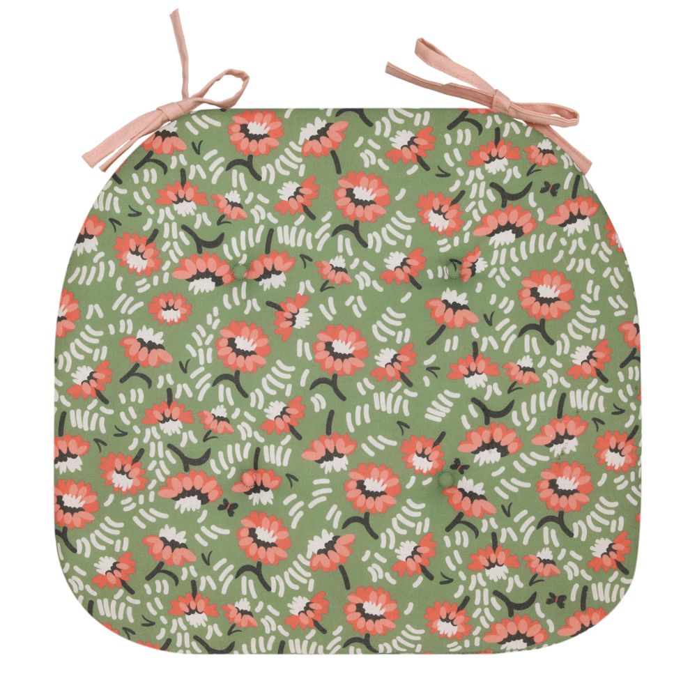 Set de 2 cojines para silla reversibles con cubierta de tejido de algodón, relleno con espuma y amarras para fijar a la silla. Cada uno tiene un tamaño de 40x42 cm. Lavar a mano. No blanquear. No usar secadora. Planchar a temperatura baja. No lavar en seco.