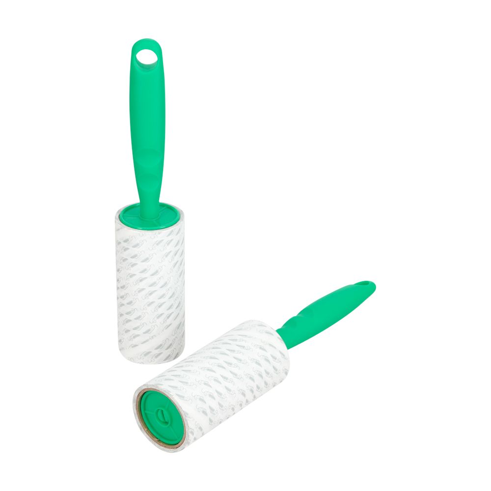 Set de 2 rodillos con adhesivo para remover pelusas de la ropa o superficies. Cada removedor incluye 40 hojas. Incluye instrucciones de uso.