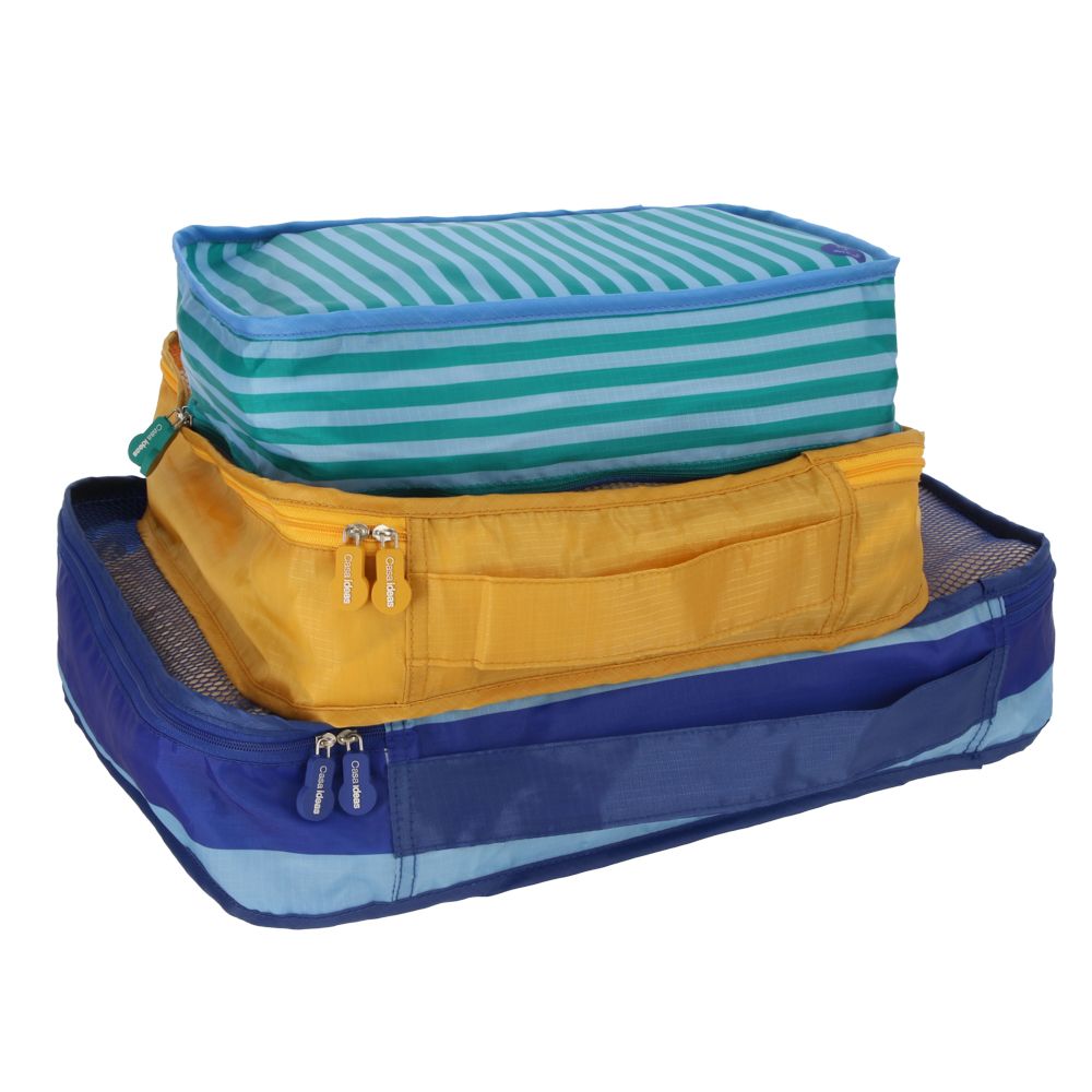 Set 3 bolsas de poliéster para guardar tu equipaje en un viaje. Ideal para organizar tu maleta al guardar ropa y zapatos. Gracias a su tela ripstop, estas bolsas son ultra ligeras, resistentes y tienen protección anti desgarro. Incluye tres piezas en tamaños S, M y L.