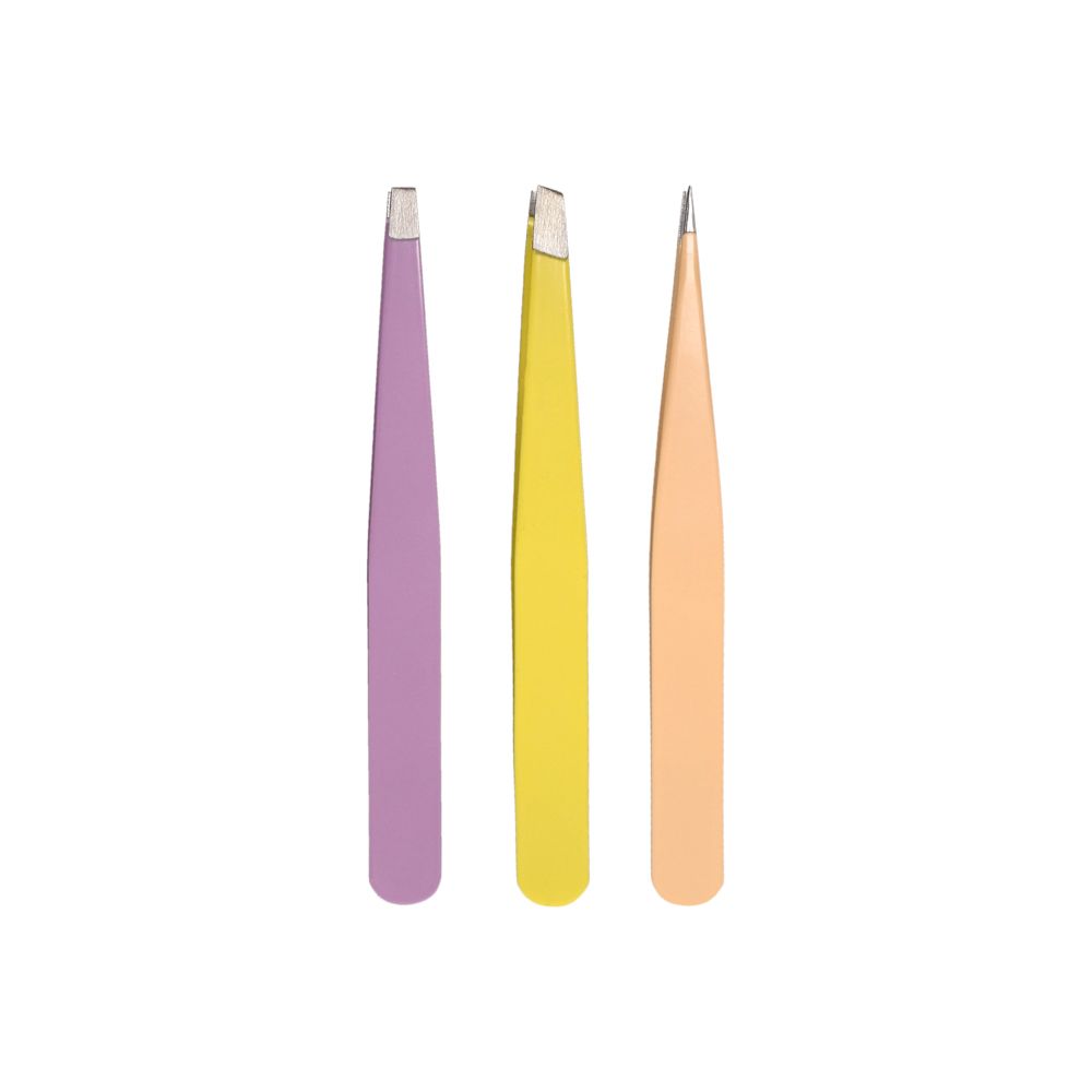 Set 3 pinzas de acero inoxidable con variadas puntas (recta, biselada y fina)