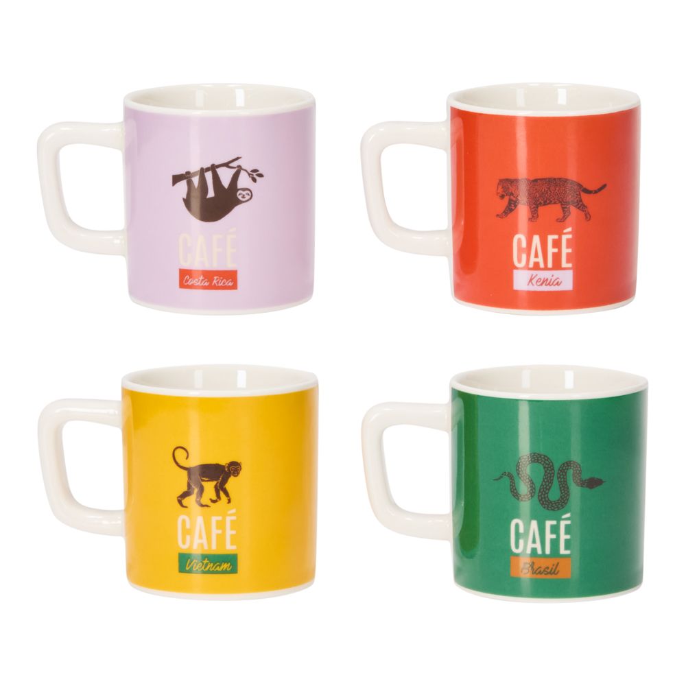 Set 4 mini Tazas de cerámica new bone china para preparar espresso. Cada una tiene una capacidad de 140 ml.