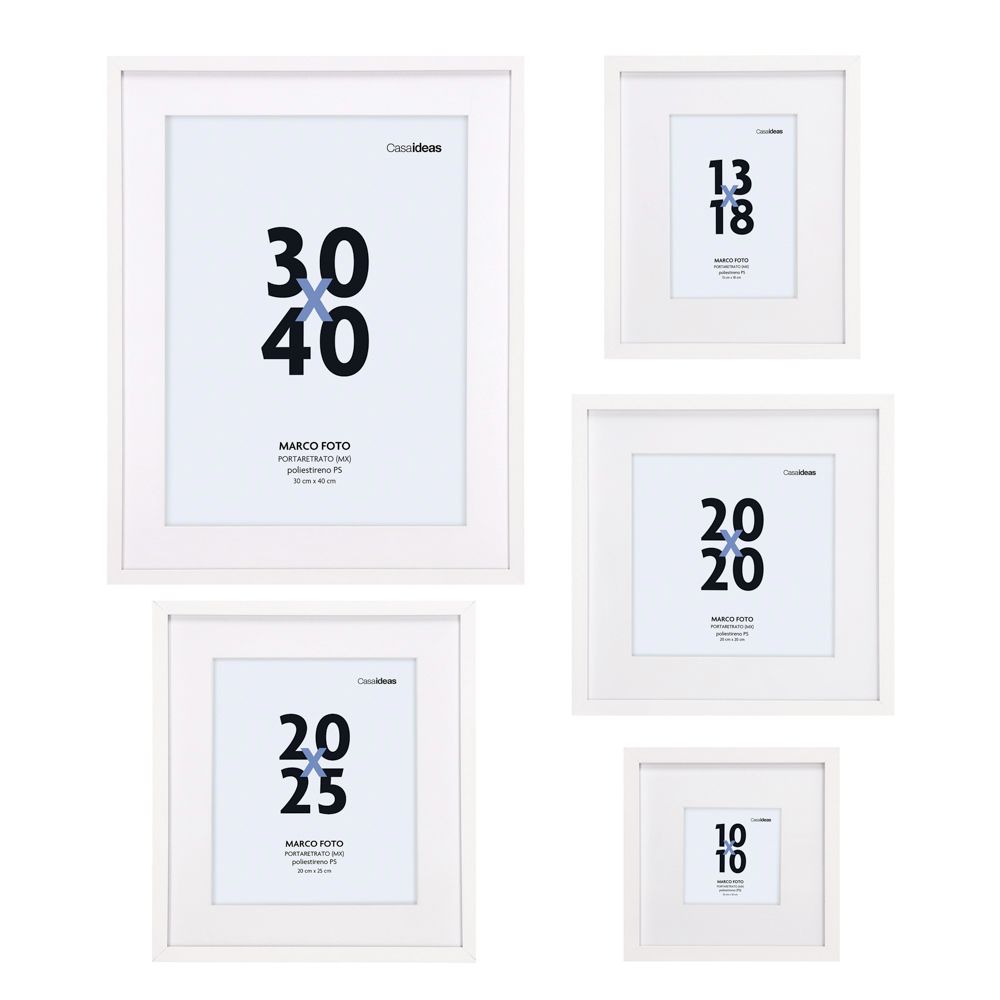 • Incluye marcos con los siguientes tamaños: 10x10 cm. 13x18 cm. 20x20 cm. 25x20 cm y 30x40 cm Incluye paspartú