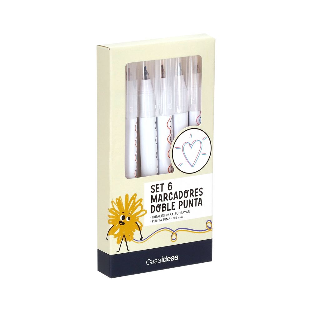 Set de 6 marcadores de doble línea con diferentes colores. Ideales para subrayar. Producto con punta fina 0.3 mm.