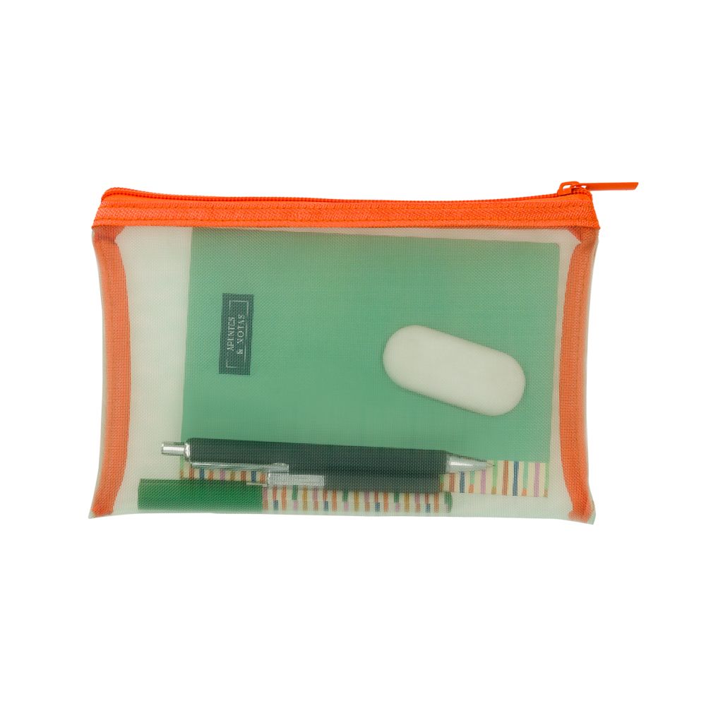 Set de estuche con libreta y accesorios para tomar apuntes. Contiene: 1 libreta de 60 hojas blancas, 1 lápiz gel de tinta negra con punta biselada y 1 portaminas 0,7 mm con 10 minas de repuesto.