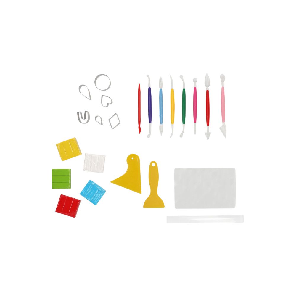 Set de herramientas para trabajar con masas o arcillas poliméricas. Compleméntalo con nuestro Set de masas poliméricas. Incluye guía de creación. Ideal para mayores de 10 años.