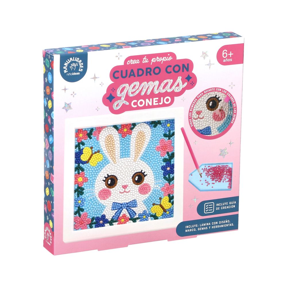 • Incluye gemas de 10 colores, lámina de unicornio, marco de fotos, herramientas y guía de creación
