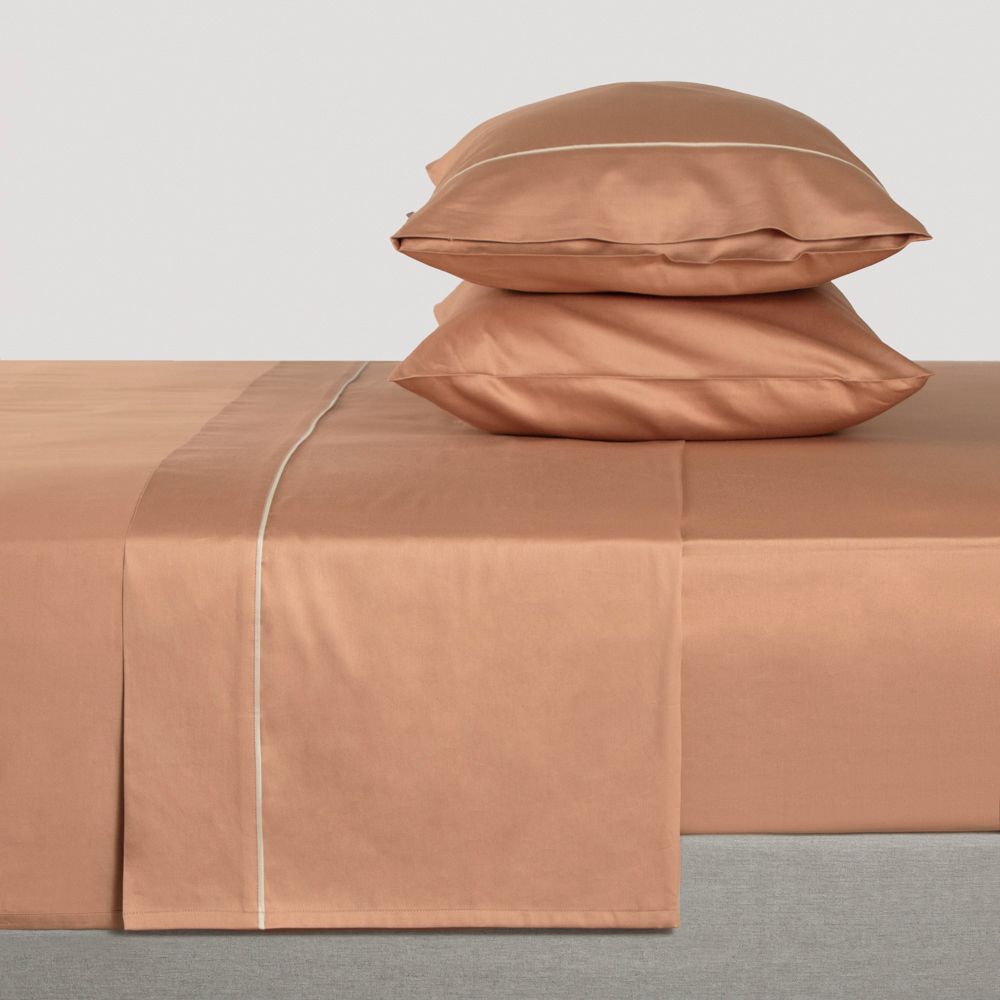 Set de sábanas de algodón 240 hilos de color liso. Incluye: Sábana de cajón 150x200cm con 33 cm de profundidad de colchón, sábana plana 230x260 cm y dos fundas de almohada 50x70 cm. Ideal para camas queen. Cuenta con certificación Oeko-Tex. Lavado muy delicado a máquina con agua tibia. No clorar. No centrifugar. Planchar a temperatura media. No lavar en seco.