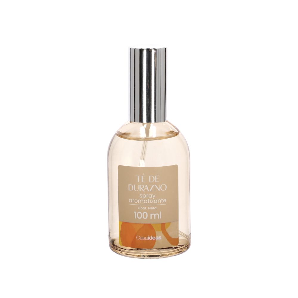 Spray aromático con aroma a te de durazno. Ideal para ambientar tu hogar. Tiene una cantidad de 100 ml.