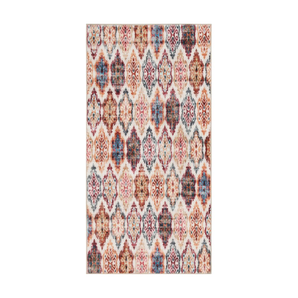 Tapete de poliéster microfibra con diseño estampado y reverso antideslizante. Tiene un tamaño de 70x140 cm.