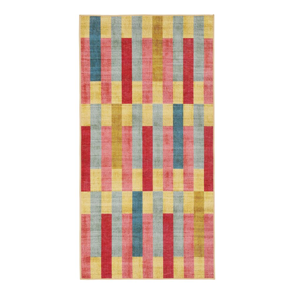 Tapete de poliéster con diseño estampado. Cuenta con reverso antideslizante. Producto lavable y apto para lavadora convencional.